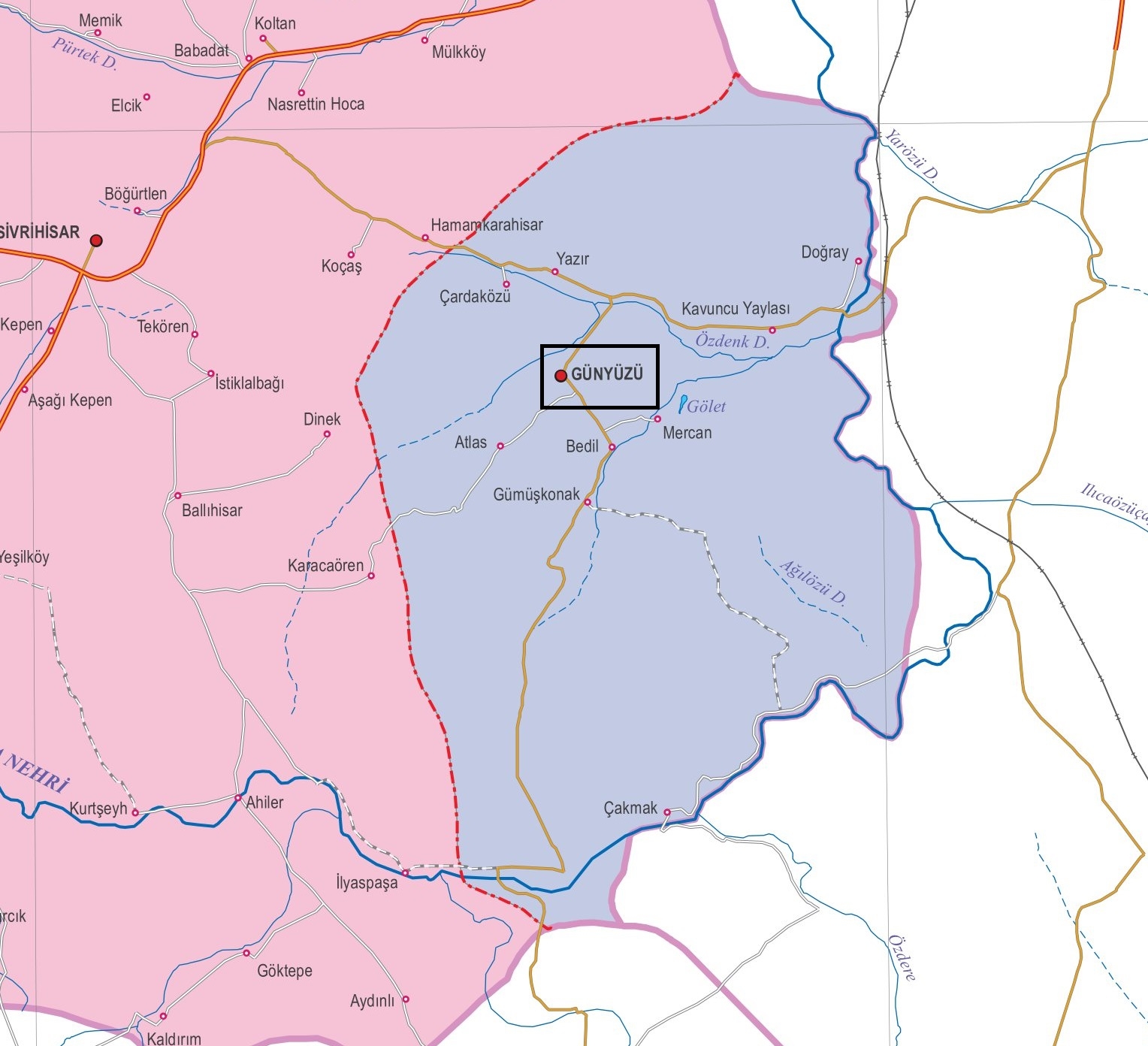 Günyüzü, Türkiye'nin İç Anadolu Bölgesi'nde yer alan Eskişehir ilinin bir ilçesidir. Günyüzü ilçesine ait fiziki, mahalle, köy ve interaktif uydu haritalarını bu sayfada detaylı inceleyebilirsiniz.