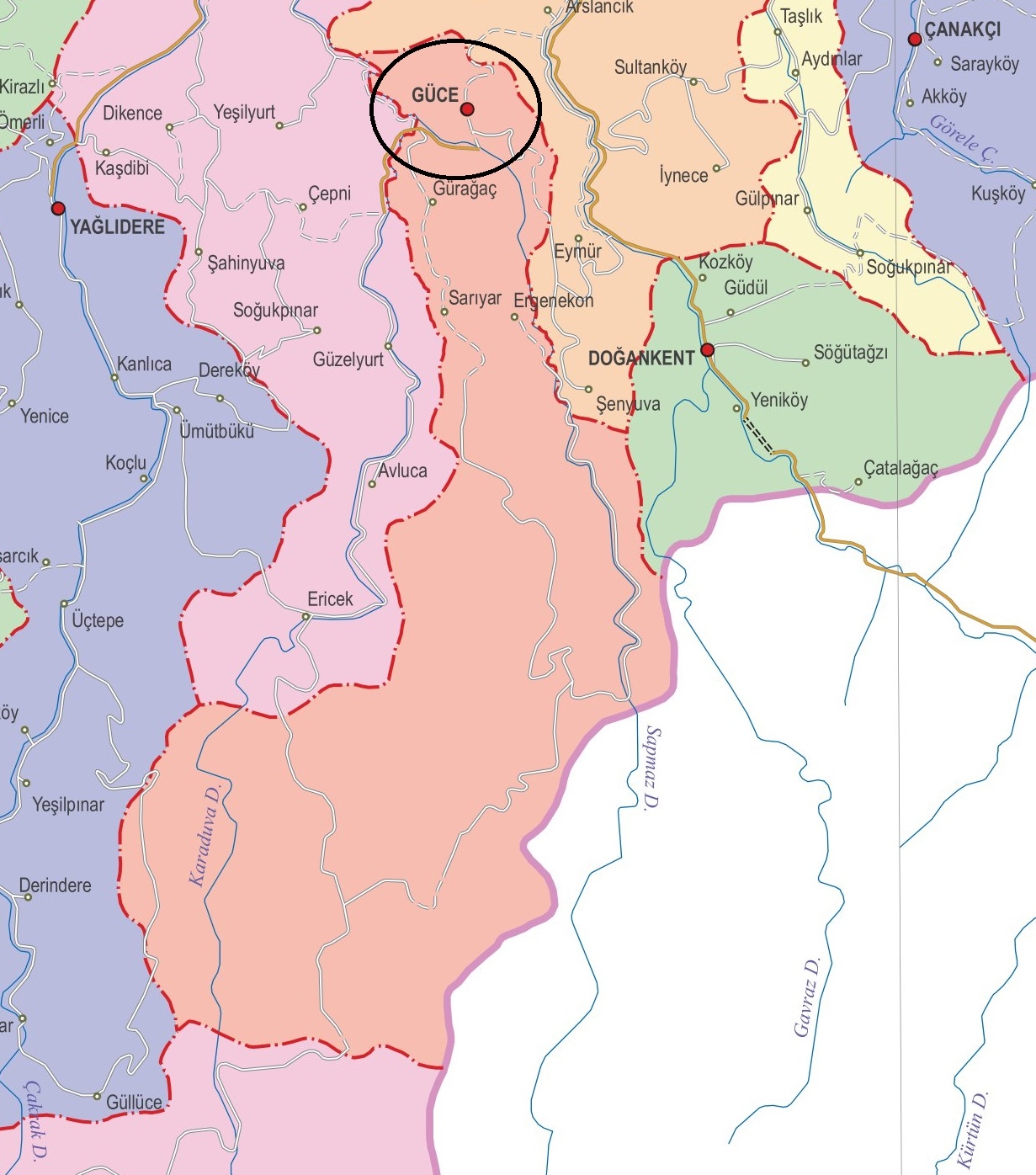 Güce, Türkiye'nin Karadeniz Bölgesi'nde yer alan Giresun ilinin bir ilçesidir. Güce ilçesine ait fiziki, mahalle, köy ve interaktif uydu haritalarını bu sayfada detaylı inceleyebilirsiniz.