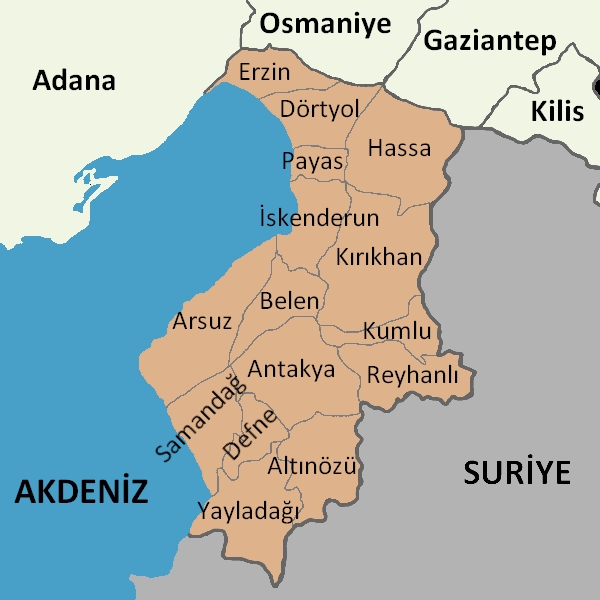 Hatay, Türkiye’nin Akdeniz Bölgesi’nde yer alan bir ildir. Hatay haritasında il merkezi ve ilçeler, fiziki ve siyasi haritalar ile mahalle ve köyleri interaktif uydu görünümüyle inceleyebilirsiniz.