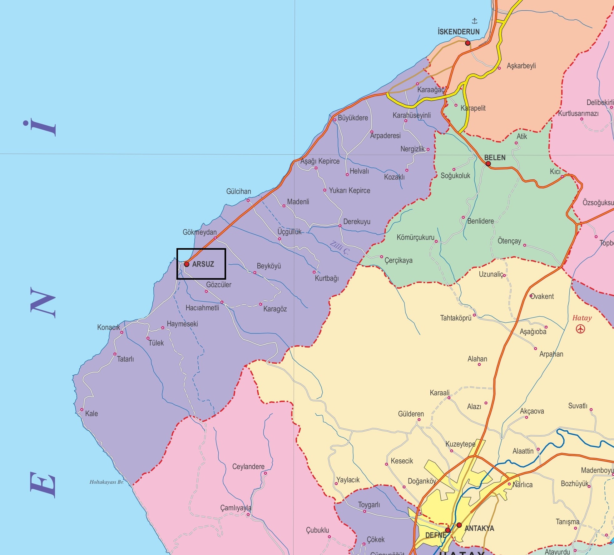 Arsuz, Türkiye'nin Akdeniz Bölgesi'nde yer alan Hatay ilinin bir ilçesidir. Arsuz ilçesine ait fiziki, mahalle, köy ve interaktif uydu haritalarını bu sayfada detaylı inceleyebilirsiniz.