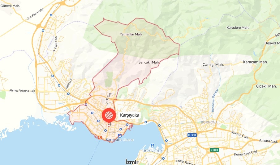 Karşıyaka, Türkiye'nin Ege Bölgesi'nde yer alan İzmir ilinin bir ilçesidir. Karşıyaka ilçesine ait fiziki, mahalle, köy ve interaktif uydu haritalarını bu sayfada detaylı inceleyebilirsiniz.