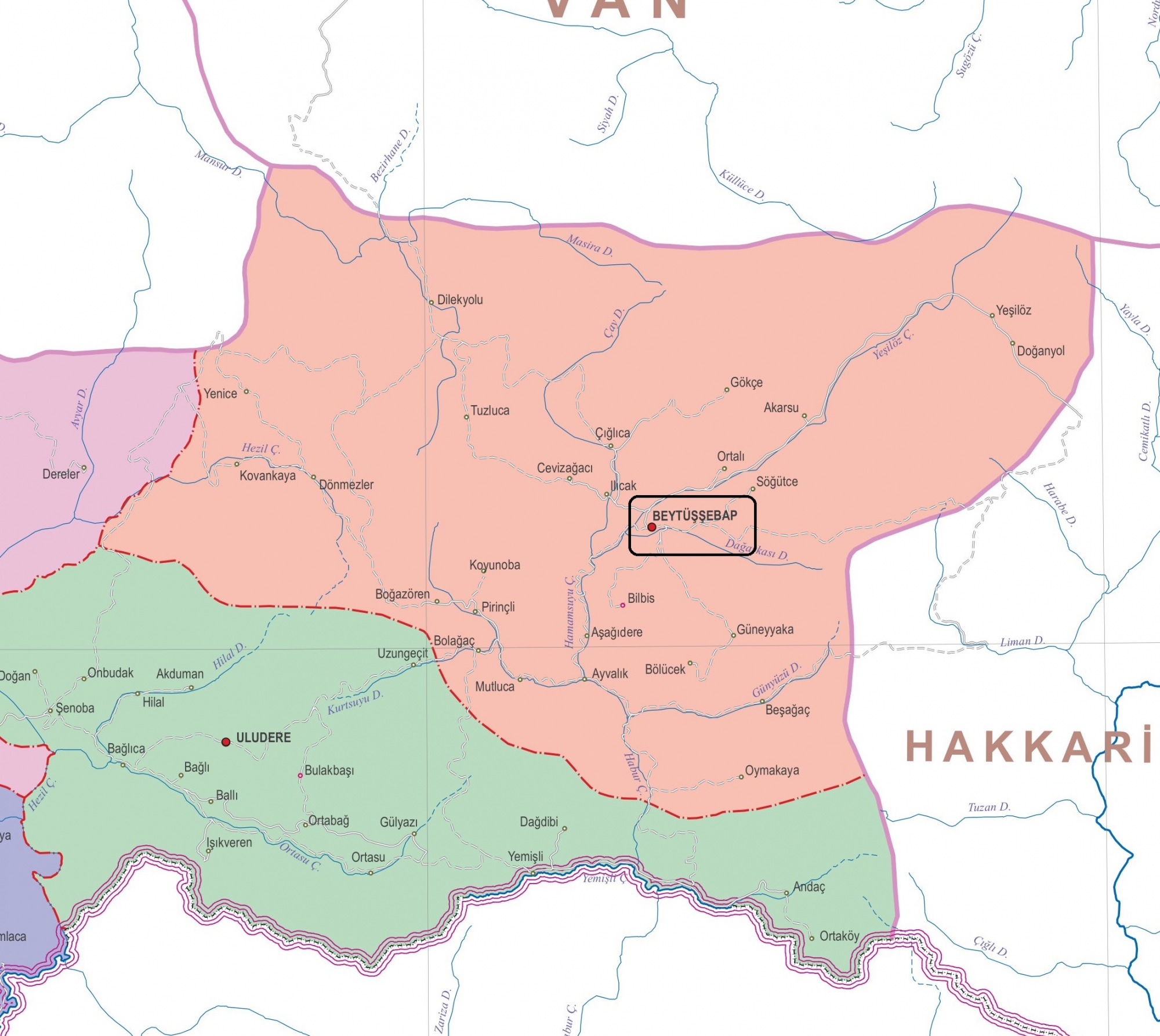 Beytüşşebap, Türkiye'nin Güneydoğu Anadolu Bölgesi'nde yer alan Şırnak ilinin bir ilçesidir. Beytüşşebap ilçesine ait fiziki, mahalle, köy ve interaktif uydu haritalarını bu sayfada detaylı inceleyebilirsiniz.